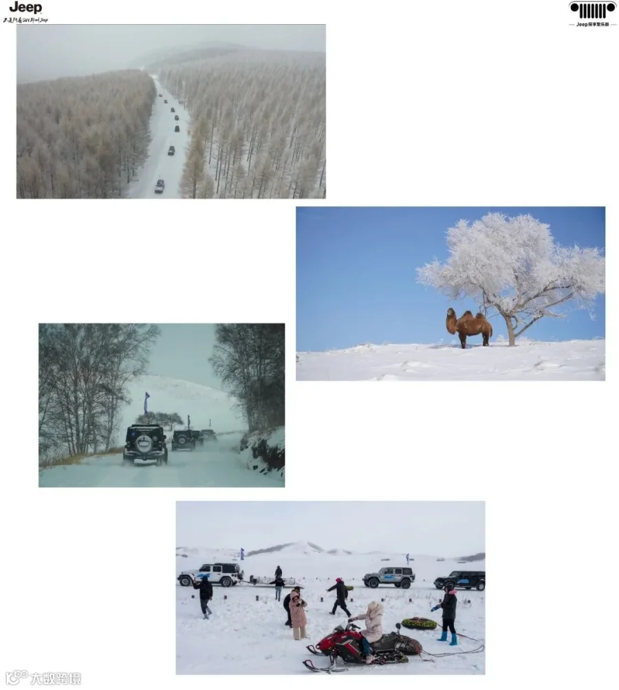 在内蒙,Jeeper跟随山东潍坊润华Jeep探享聚乐部一路向北来到了乌兰布统雪地,开启为期4天的雪地穿越、冰河漂移之旅。