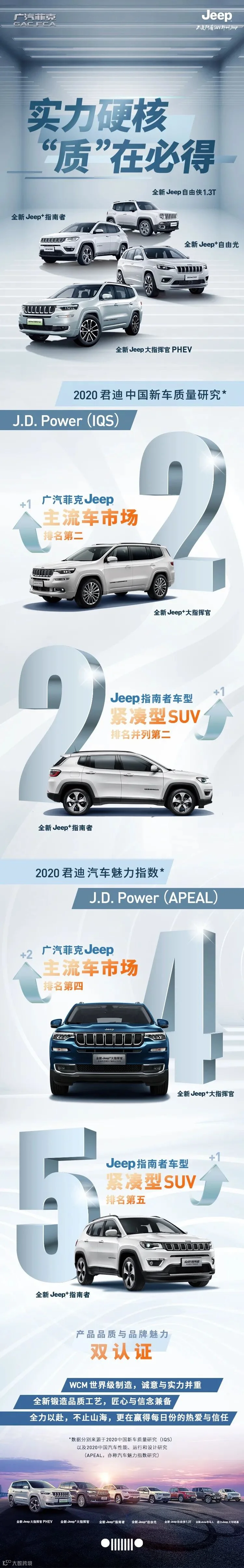 导读:广汽菲克Jeep斩获2020 J.D. POWER中国新车质量及汽车魅力指数多个奖项