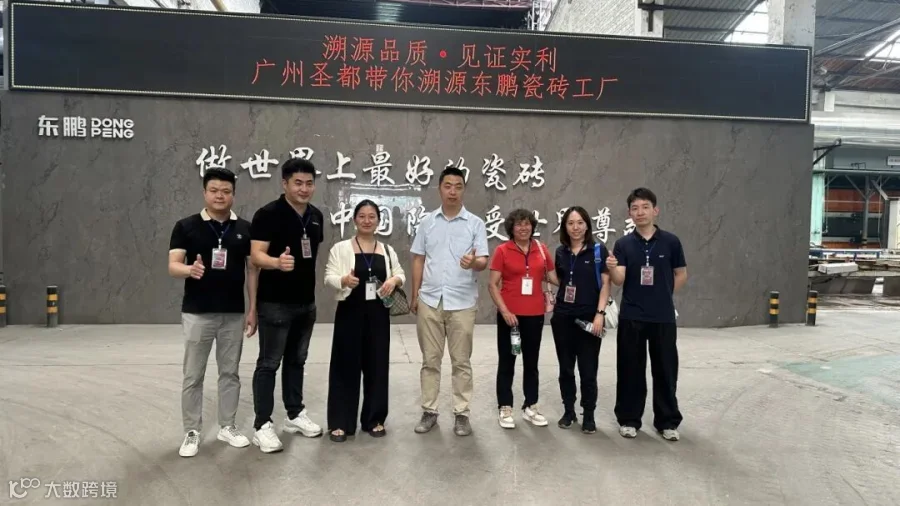 左1:林湖-东鹏广佛区域销售服务商、左2:张海明-东鹏广佛整装渠道负责人、左3:廖女士-圣都客户代表、左4:陈英杰-东鹏清远生产基地负责人 、左5:熊女士-圣都客户代表