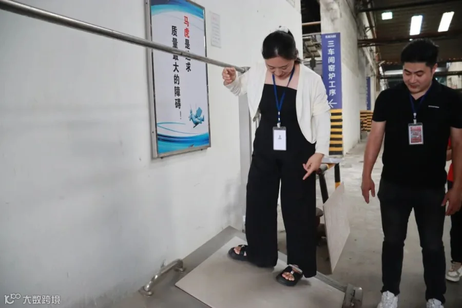 2、防滑实验室! 客户代表亲自踏上湿水倾斜的瓷砖——稳如磐石! 安全性能眼见为实。