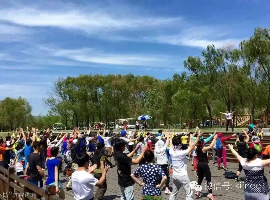 新京报讯 5月16日,北京野鸭湖国家湿地公园,150余人从城区乘大巴来此参加快乐村跑首站比赛。2008年体操奥运冠军杨伊琳带领选手热身并领跑。