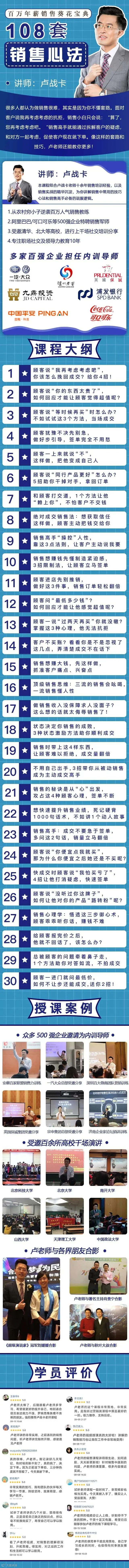 这些问题的答案,都能够在卢战卡老师的《108套销售心法》课程中学到。