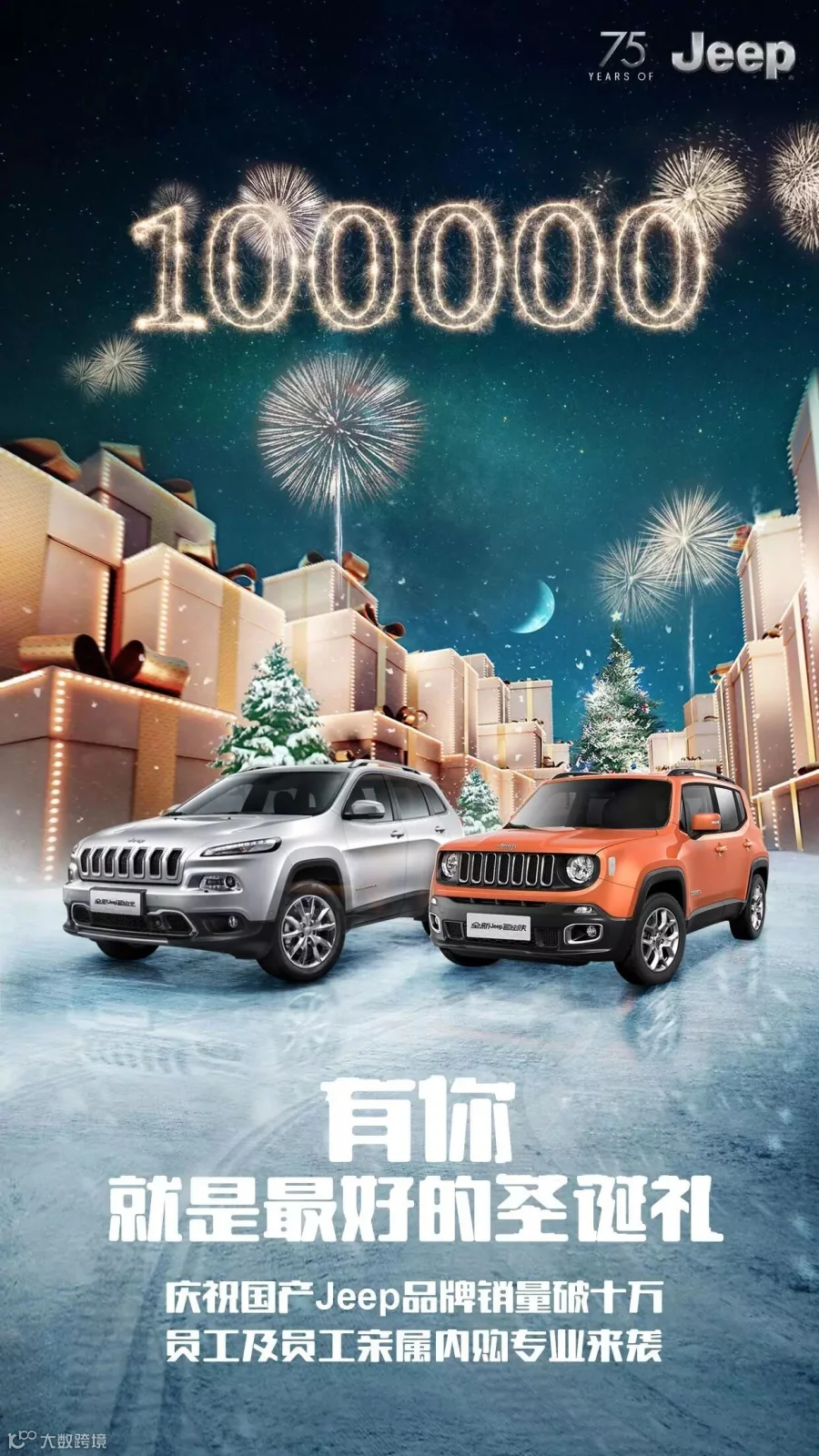 为了庆祝国产Jeep品牌销量破十万,也为了感恩回馈大家这一年的奋勇拼搏,于是公司决定,SJV在职员工&员工亲属购买国产Jeep内购车型全部享有85折。这么大手笔的内部福利,只为与大家共享这份成长的喜悦!