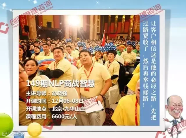 很多人跟我说,冯晓强的销售比徐鹤宁(销售女神)还厉害!刚刚听了冯晓强老师的总裁商战智慧精华班课程我受到了很大的启发,学会了把抱怨和压抑转化为人生当中最大的正能量。我也要让我认识的很多国内大大小小培训界的老师,我会介绍更多的朋友来中国NLP商学院听冯晓强老师讲课。冯晓强老师的培训课程是最落地、最实战的!