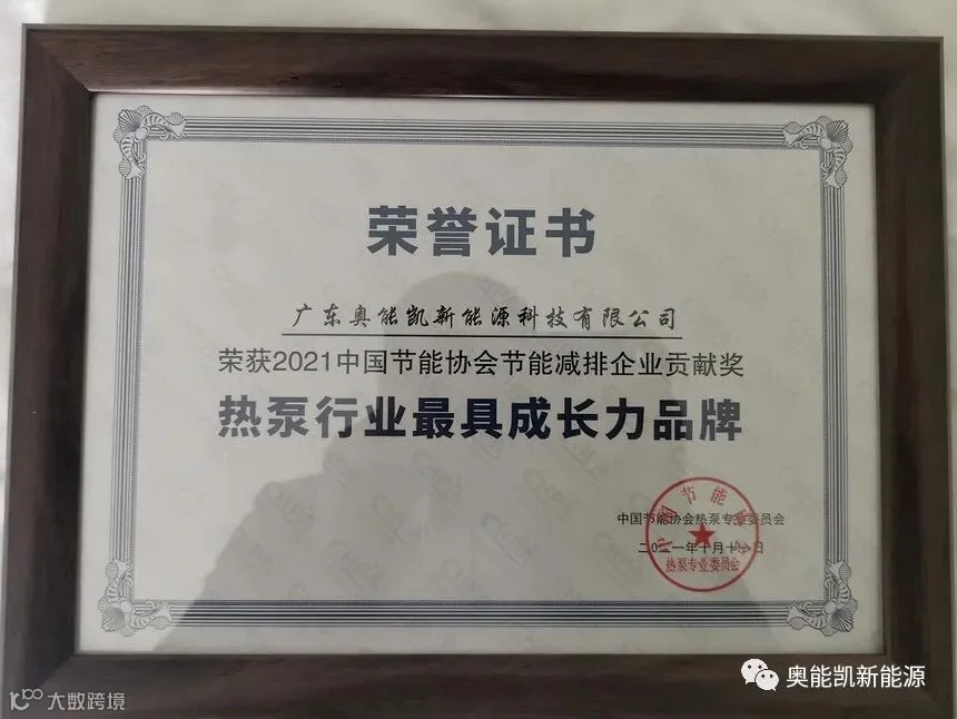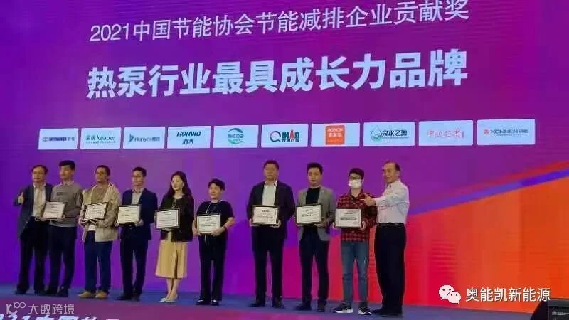 奥能凯空气能荣获“2021热泵行业最具成长力品牌”奖