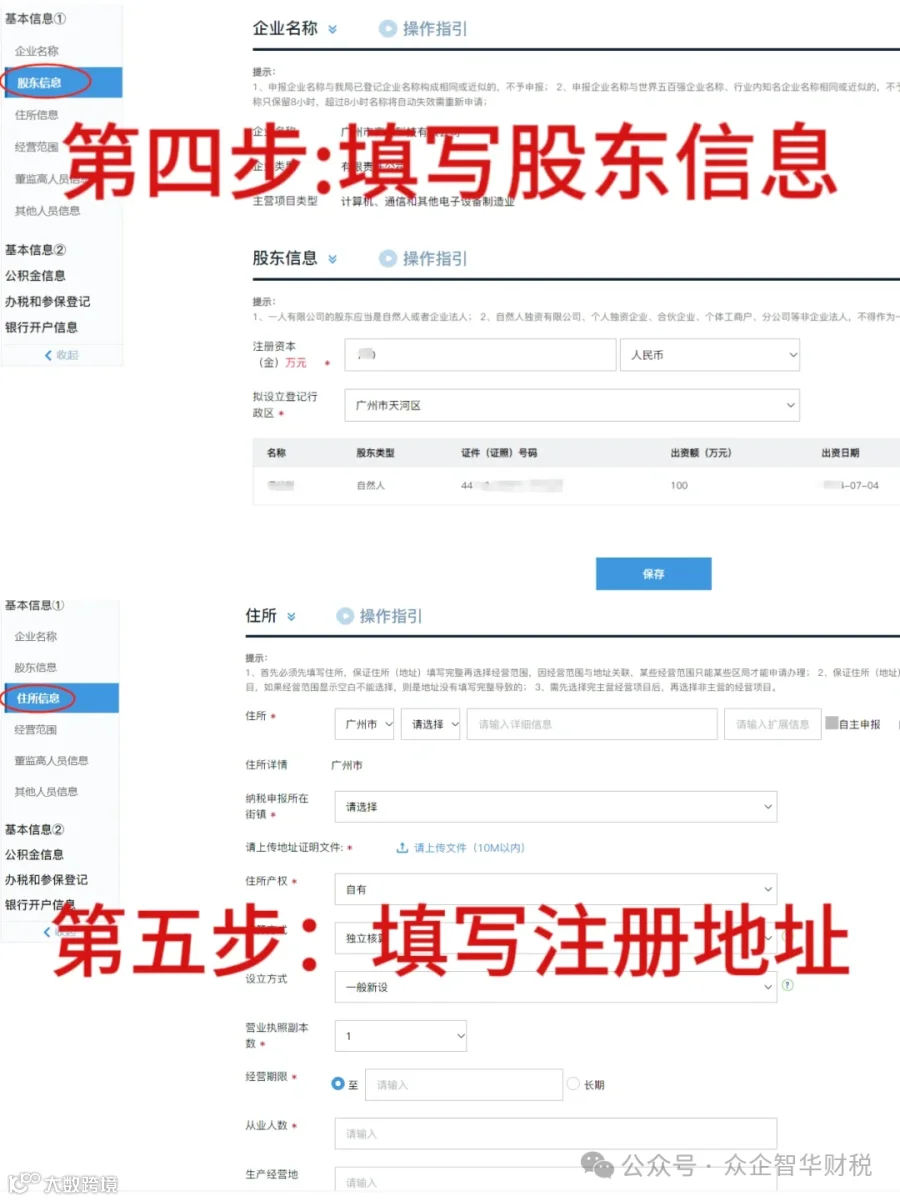 3、公司名字录入:行政区划+字号+行业表述+组织形式;例如:广州市+字号+贸易+有限公司
