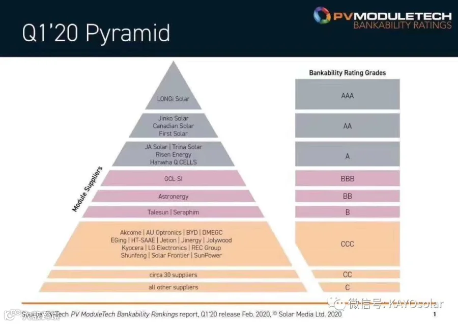 隆基成为PV-tech可融资评级最高的企业,也是唯一的AAA企业。
