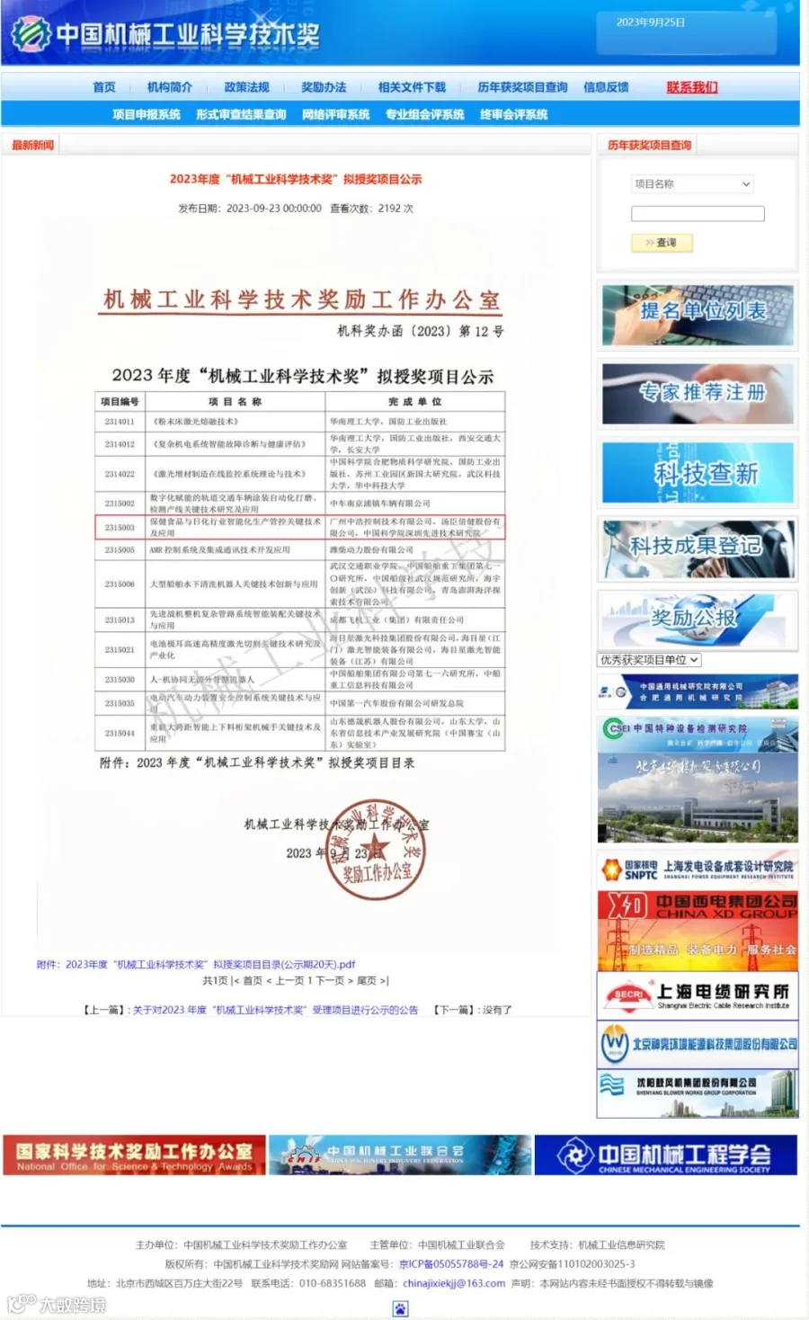 机械工业科学技术奖励工作办公室今天上午公示了2023年度“机械工业科学技术奖”拟授奖项目,由广州中浩控制技术有限公司联合汤臣倍健股份有限公司、中国科学院深圳先进技术研究院申报的“保健食品与日化行业智能化生产管控关键技术及应用”拟获科技进步三等奖。