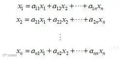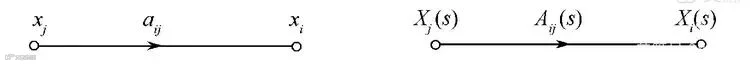 变量xi和xj可以是时间函数、复变函数,aij是变量xj变换(映射)到变量xi的数学运算,如果xi和xj是复变量s的函数,称aij为传递函数Aij(s),即上式写为