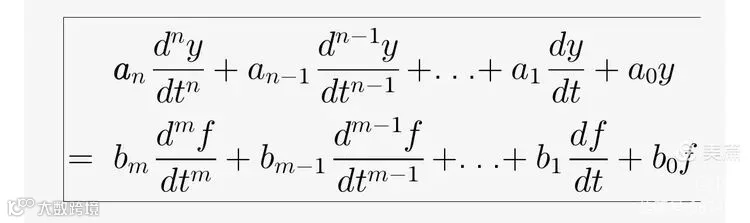 利用物理定律建立系统微分方程,消去中间变量,得到只含有输入量和输出量的方程式,可化为如下标准形式。