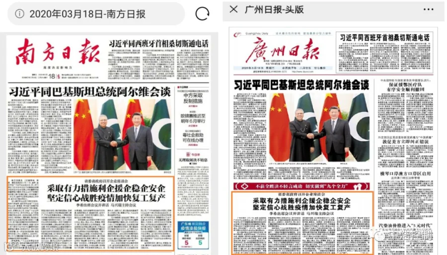 南方日报和广州日报头版对会议进行了报导