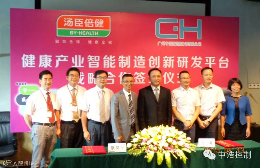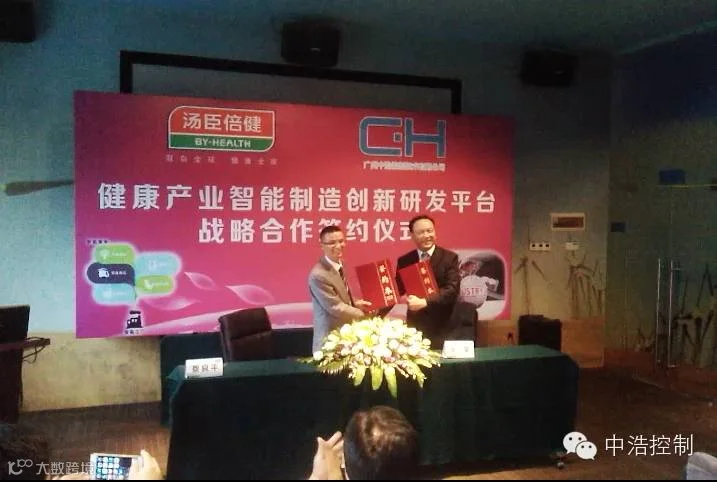 2015年8月,汤臣倍健股份有限公司和广州中浩控制技术有限公司,签署了战略合作协议。双方决定,针对汤臣倍健珠海生产基地全面实现工业4.0,在国内乃至全球树立工业化与信息化深度融合的标杆,成立联合研发机构。该机构的领导小组由双方高管组成,下设装备、工艺、质量、物流、精益管理和客户服务等多个工作组。每个担负执行任务的工作组,都由双方派出的现场专家和自动化与信息化专家组成,结合新工厂建设和现有工厂改造,提出务实可行的解决方案,并协调各方(包括精选的一系列装备提供厂商)的工程技术力量,打造面向未来的、符合“互联网+”概念的智能工厂。