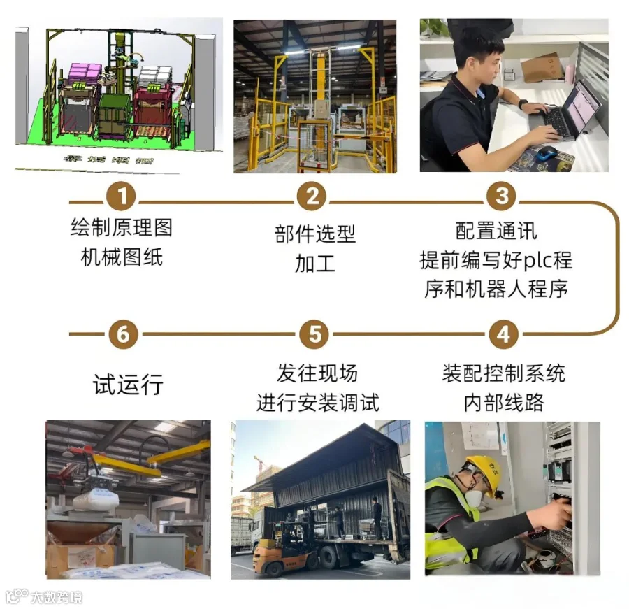 从此告别 “手抖撒料” 和 “破袋残留”等问题,最后机械臂将袋子投放至废包装袋收集框内。