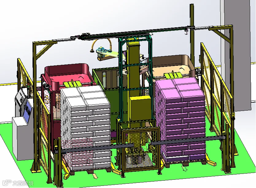 友仪技术根据客户的生产需求、场地等因素,设计出一套占地空间小、效率快、无需人工接触的,立柱机器人拆垛项目,主要应用于纺织袋包装的化工原料、建材、饲料肥料等化工和农业行业粉体的拆袋、破袋,能快速完成拆料作业。