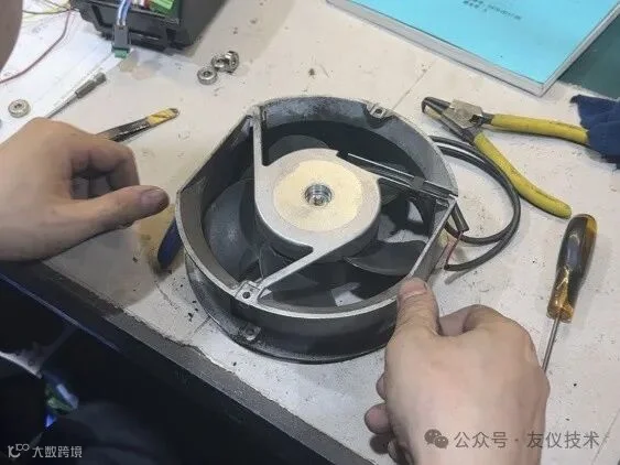 清理散热系统油污粉尘,检查散热风扇,轴承磨损、叶片老化情况,风扇叶片等是否有裂缝,开机是否有异响,安装螺丝是否松动,风扇转速检测,必要时建议更换(通常情况每2年建议更换一次)