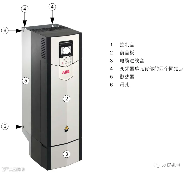 ACS880-01 适用于控制交流异步感应电机、永磁同步电机、交流感应伺服电机和ABB 同步磁阻电机 (SnRM 电机,需要加选件 7502) 的变频器。变频器的主冷却风机为速度受控型,辅助冷却风机为开关控制型。