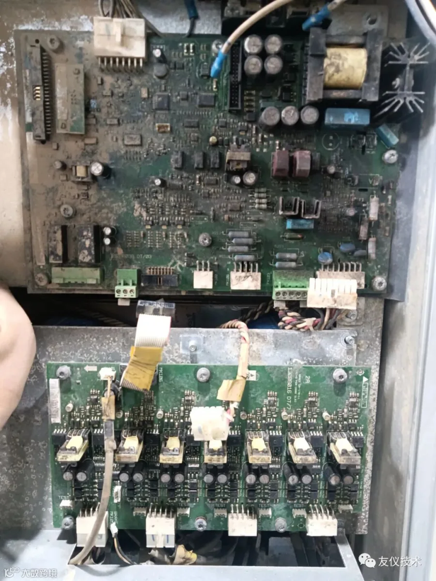 设备送修时有大量的泥浆,根据淹没的部位,看似躺着被淹的(小编表示很惊讶,师傅说一米多长的变频器,而且是离地有一定距离,全部淹没需要长江决堤才有那么深的水位吧),先不管怎么被淹的了,我们来看一下设备状况和维修过程吧。