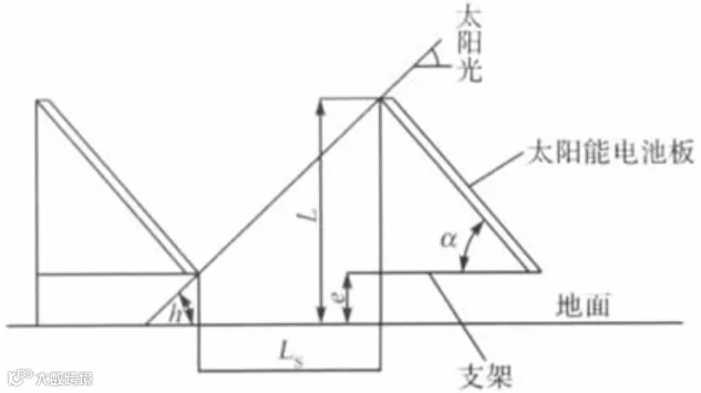 由公式( 8) 可知,太阳高度角h 越小,其投影距离L 越大。所以设计采用最小的入射角即冬至日太阳高度角进行阵列间距的计算可以满足要求。