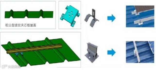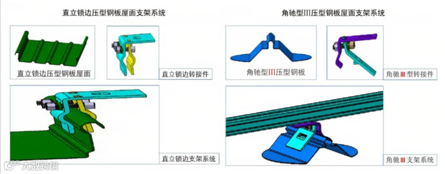 针对不同的屋面材料,会有不同的支架系统。
