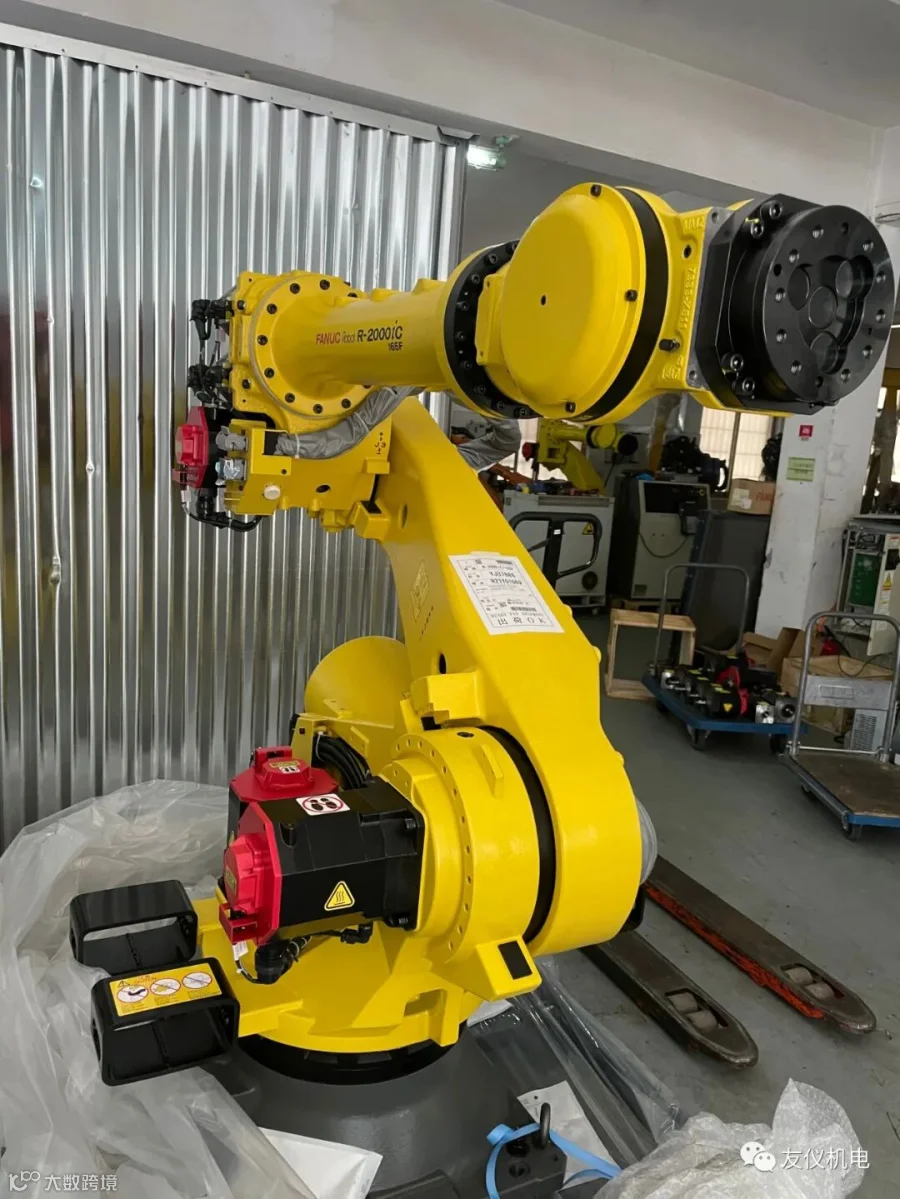 昨天公司到货一台全新的发那科R-2000iC机器人,最大负重是165kg , 可达半径是2655mm。