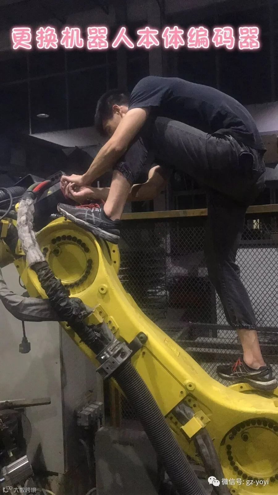 先对外部进行处理,更换外部轴焊钳电机的编码器线与焊钳变压器的电源线,并将这两根高低压线隔开;更换机器人本体六个电机的编码器和外部轴电机的编码器。