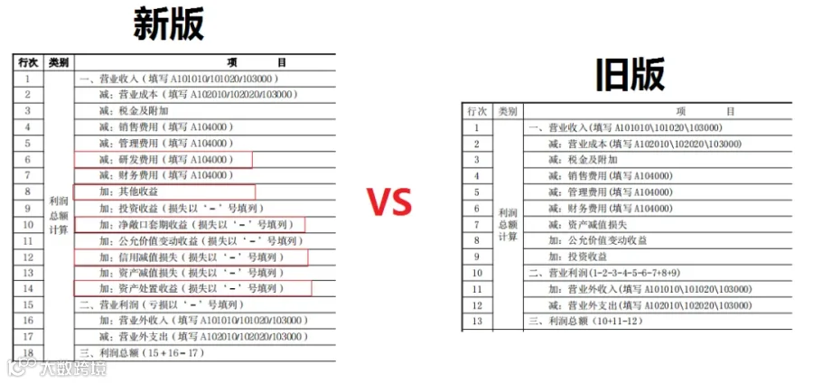 注意啦!本次变化主要涉及“利润总额”“应纳税所得额”“应纳税额”“实际应补(退)税额”四个部分。