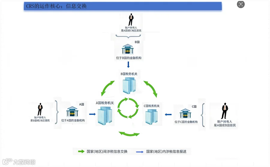 (一)全球金融“信息联网”。您可以想象全球主要国家和地区(包括中国香港、新加坡、英国、澳大利亚等,目前超过100个)的金融机构(银行、券商、基金公司等)建立了一个“信息共享联盟”。这就是CRS。