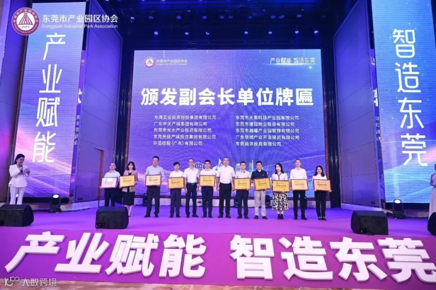 作为东莞市产业园区协会副会长单位,华迅控股集团董事长方园应邀参加大会,并上台接受副会长单位证书和牌匾。