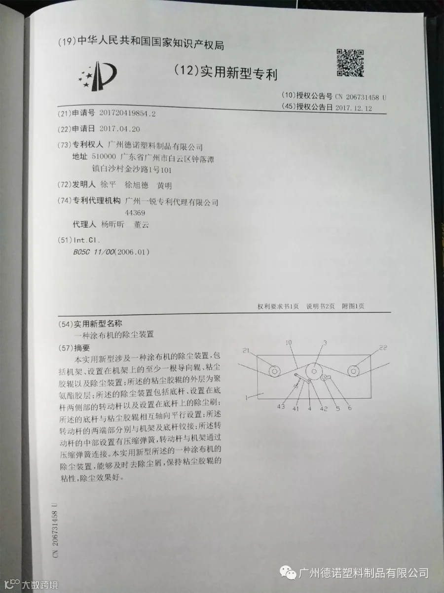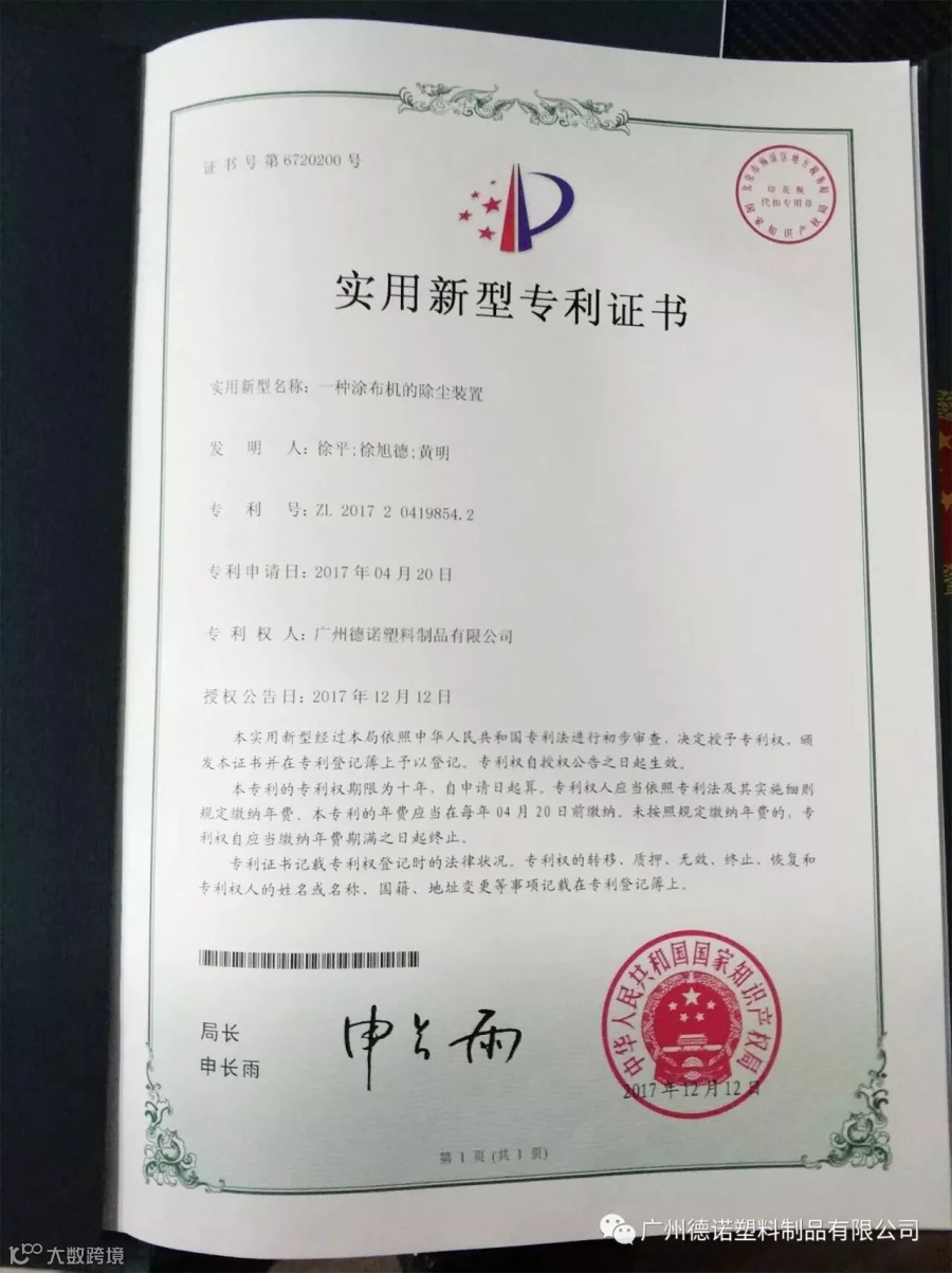 专利1:一种涂布机的除尘装置