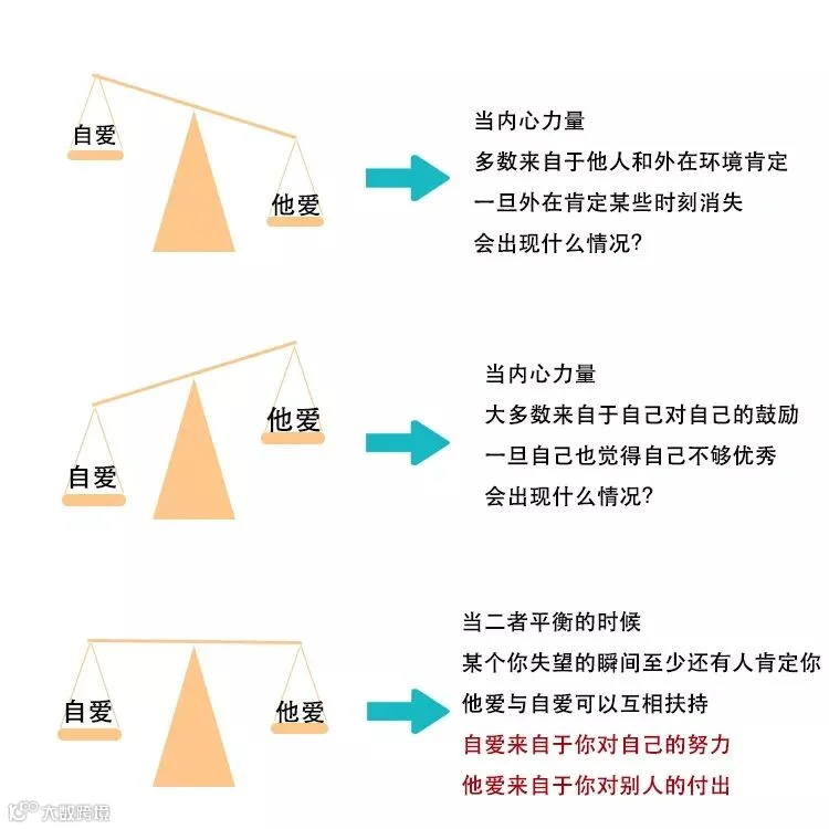 只靠自己肯定自己,忽略了人的群居属性,怀疑自我价值的时候,可能失去了外界的助力。