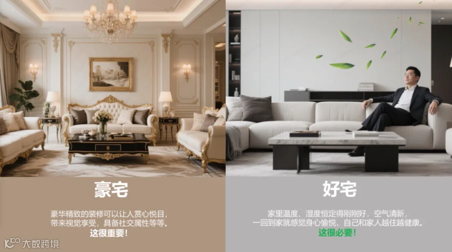 可改进:采用“低风速空调或水循环控温”策略,使温度变化更缓和、人体感受更平稳。对高端住宅而言,自适应控温与室内无风感尤为重要。