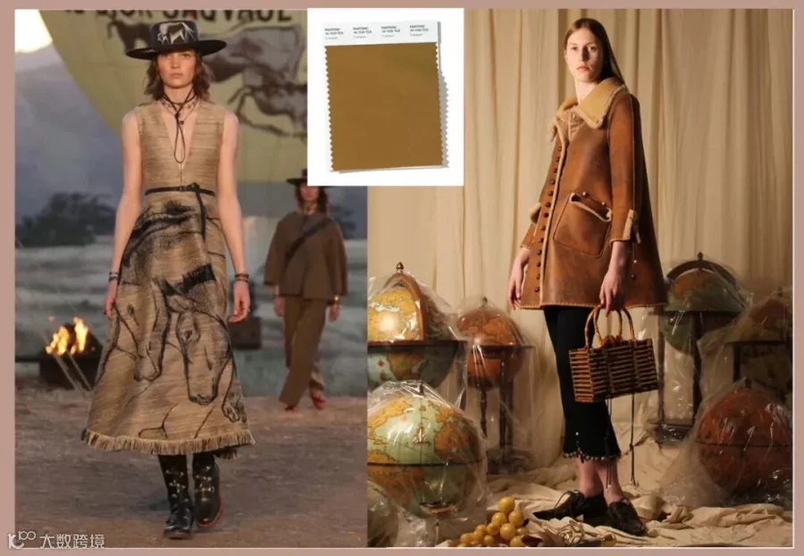 “天觉灵主题”强调回归本源,相信本能以及贴近自然,配色既让人感到亲切又带有异域情调。核心配色是饱和的赤褐色调,如生粘土色和红石南色,结合锈金色,形成大地风格的色彩组合。
