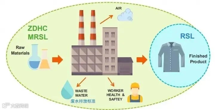 MRSL与我们所熟知的RSL之间存在的最主要的区别是:MRSL管控的是染厂所用的染料、助剂等化学品中的有害物质,而RSL管控的是染厂交付给品牌的成品面料上的有害物质。我们应该知道这些面料上有害物质的存在主要原因就是染整加工过程中使用了含有有害物质的化学品,但是这些有害物质其实很大一部分进入了染厂排放的废水中,而国家、各地政府以及品牌对废水排放都有一定的标准和要求,因此废水管控也一直是染厂关注的焦点。针对这一问题,ZDHC也有推出废水排放标准和相应的指南文件。作为有害物质的输入源头,上游化学品企业产品的环保品质直接影响了下游染厂无论是面料还是废水的合规情况,这也是为什么MRSL会得到如此的重视。