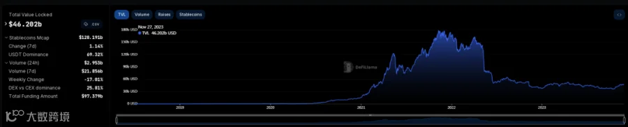 2023年11月19日- 11月26日总交易量:28.2亿美金,较上周减少近4.6亿美金。