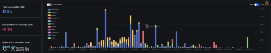 ii. 去中心化交易所方面,ETH在1911开始有大额清算,在905至402为密集清算区,523为最大清算点。