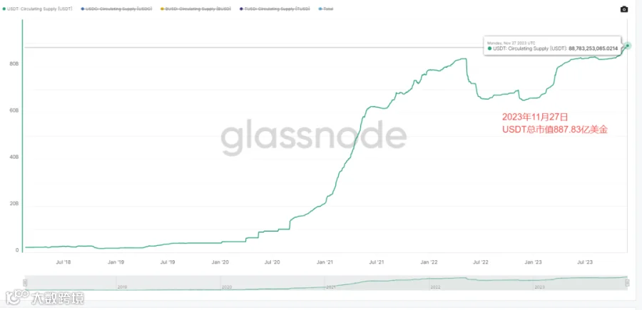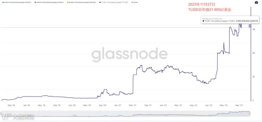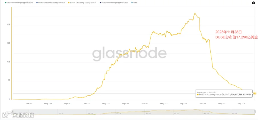 USDT市值增加10.69亿美金,USDC市值增加1.05亿美金,BUSD市值由于不能新铸造持续下降0.7亿美金,TUSD市值下降1.3亿美金。