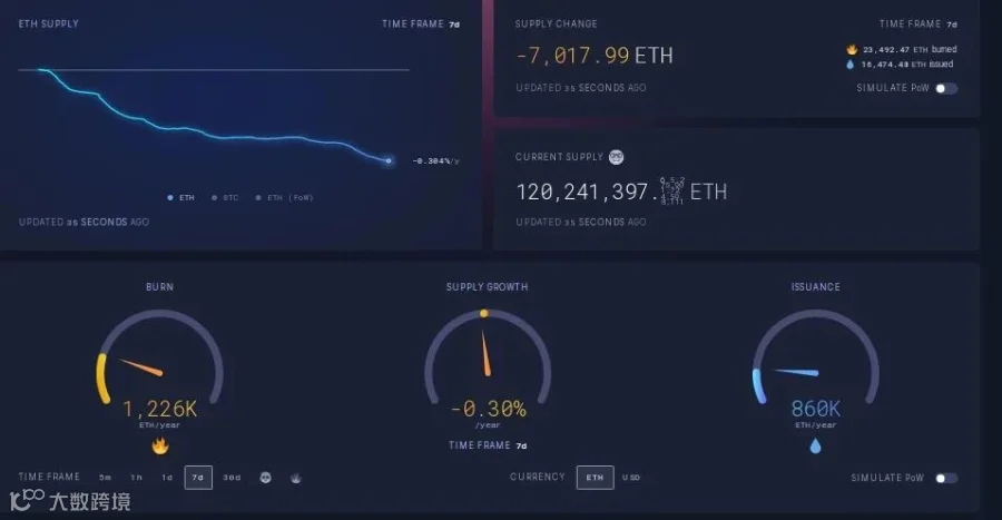 ii. ETH开始保持通缩,目前为第三周,7天年通胀率保持-0.3%。