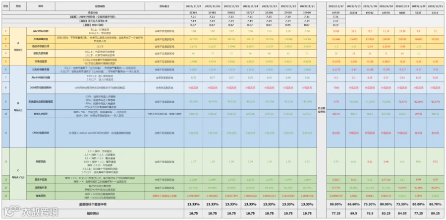 本周时间内整体市场行情回调下跌,但指标依然处于较低分值,未有入场机会。