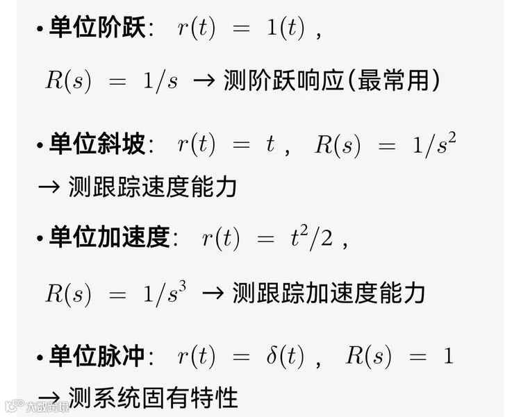 时域性能指标是衡量系统在时间域内响应质量的关键参数,主要分为动态性能指标和稳态性能指标两大类。这些指标通常基于系统对单位阶跃输入信号的响应来评估,因为阶跃输入能最严峻地考验系统的稳定性、快速性和准确性。