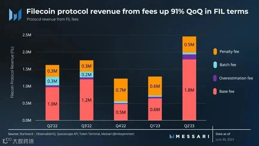 根据Messari的收入分析,Filecoin的协议收入包括以下部分:
