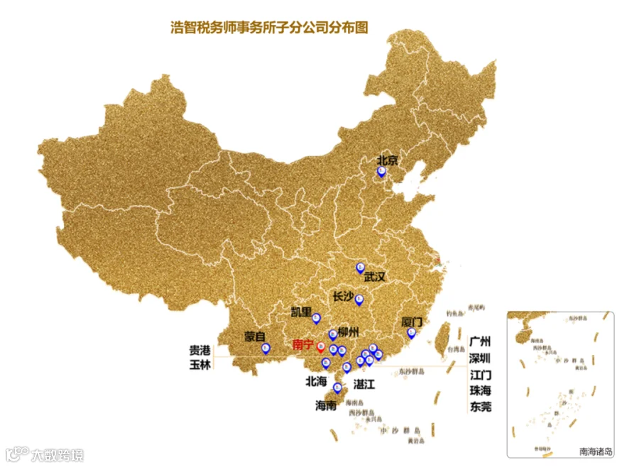 浩智税务师事务所成立于2009年,注册地在广西自由贸易试验区南宁片区五象新区,在中国注册税务师协会公布的2022年度税务师行业较大经营收入规模税务师事务所信息中,营业收入全国排第39位,广西排第1位,为2021年度全国税务师行业经营收入前百家税务师事务所、AAAA级税务师事务所、广西十强税务师事务所、广西壮族自治区两新组织党建工作示范点、广西税务师行业"四强"党支部、广西注册税务师协会常务理事单位、广西壮族自治区“守合同重信用"企业。在北京、广州、深圳、东莞、珠海、湛江、武汉、长沙、贵州、云南、玉林、贵港、北海、柳州等地设有14家子分所。