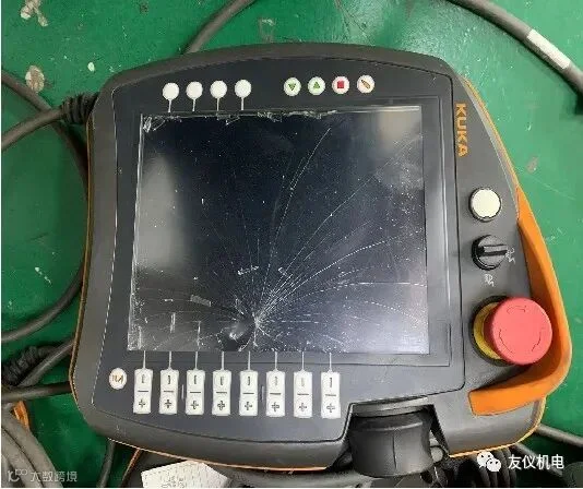 故障9:库卡机器人示教器显示不良、竖线、竖带、花屏、摔破等。
