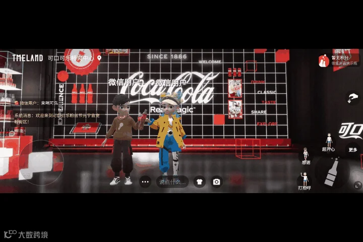 从平台的角度看,TMELAND上线了微信小程序,用户只需通过小程序的下拉列表便可以进入元宇宙场景,几乎零门槛,用户交互操作的友好度大大提升;与此同时,TMELAND小程序与可口可乐的小程序之间实现了无缝跳转,也为更多资本赋能提供了可能。