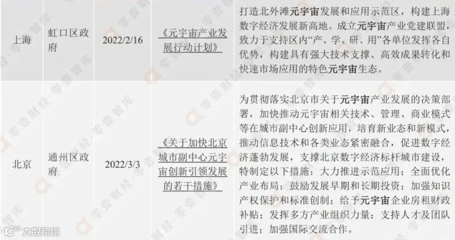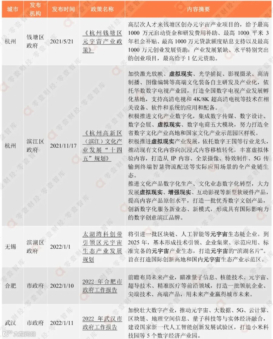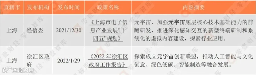 表4:市级行政单位及有关部门元宇宙产业政策汇总