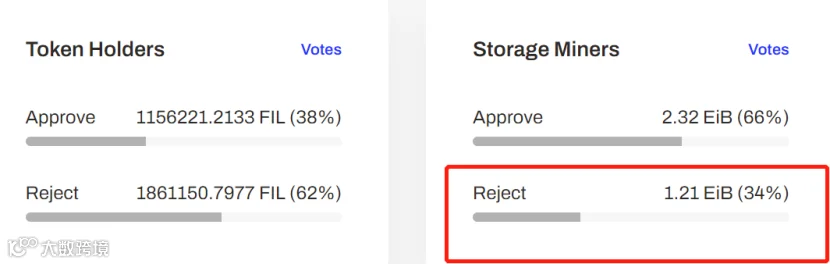 由于Filecoin网络最大的服务商——人人,投票赞同提案,同意的票数一举反超。人人服务商全网算力超过1个EB,权重很高,它投了赞成票直接影响了结果。