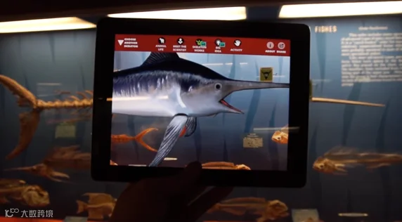 下面是个直观的例子,自然历史博物馆通过AR应用改变了化石展览的形式。通过应用程序,访问者可以将手机覆盖在化石上,并看见动物“原地复活”,与化石有关的背景也将栩栩如生被展示出来。类似技术将被应用于景区展览,想象眼前的古建筑在你面前拔地而起,或眼前历史人物“活过来”,并与你热情互动。