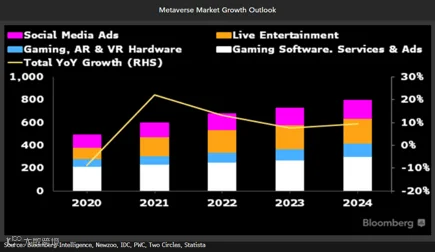 调研机构Newzoo预测元宇宙在2021年的市场将会达到400亿美元;而彭博社则是预测会达到800亿美元。无论行业未来如何,当下的资本市场已经在元宇宙概念的影响下有所动作,元宇宙有望接替新能源,成为下一个投资与投机角逐的战场。