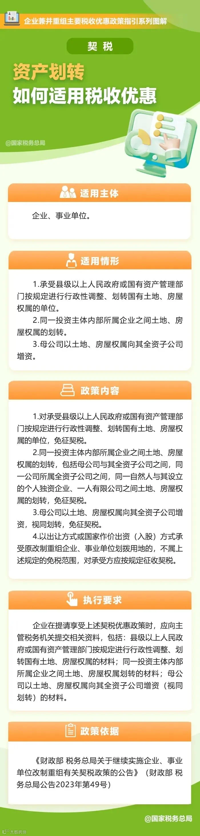 一图了解:资产划转如何适用契税税收优惠