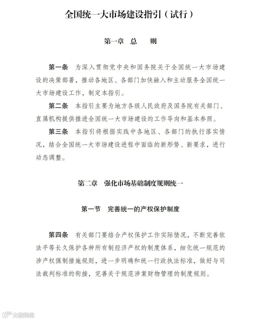 国家发展改革委关于印发《全国统一大市场建设指引(试行)》的通知