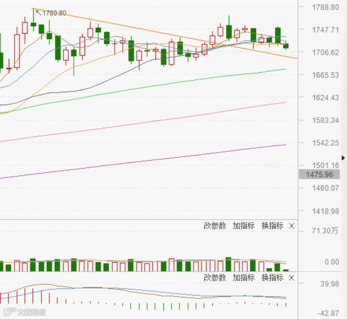 黄金昨日高开低走,在1750美金一带受阻,目前价格跌破20日线,技术上看走势有回踩支撑线的需求,需要关注20日线的支撑力度,目前保持1700美金—1770美金区间震荡,需要谨慎关注回踩60日线的回调风险。
